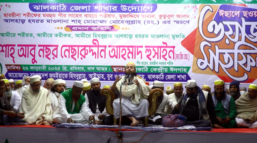বাংলাদেশ জমইয়াত হিযবুল্লাহর ঝালকাঠি জেলা সভাপতি অধ্যক্ষ মাওলানা আবদুর কাইউম এর সভাপতিত্বে অন্যদের মধ্যে বরিশার কশাই মসজিদের খতির মির্জা নুরুর রহমান বেগ, ছারছীনা মাদ্রাসার অধ্যক্ষ মাওলানা রুহুল আমি আফসারিসহ বুজুর্গ ওয়াজ নসিহত করেন। পরে মিলাদ ও দোয়া মোনাজাত করা হয়।
