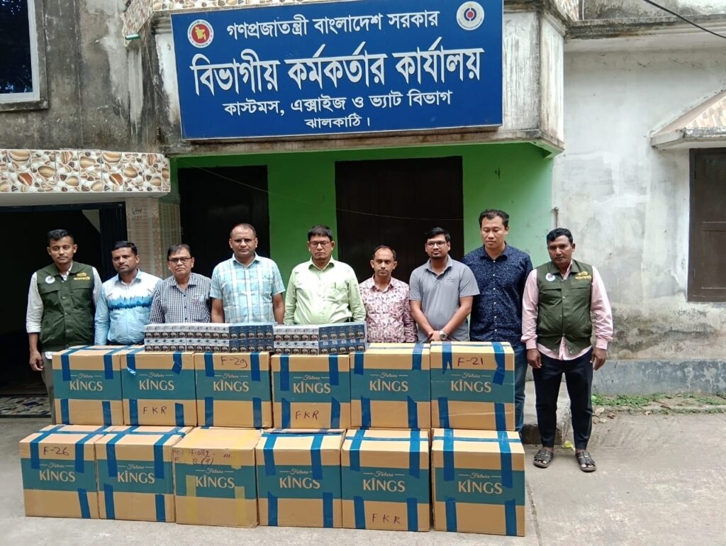 কাস্টমস, এক্সাইজ ও ভ্যাট বিভাগ সূত্রে জানা গেছে, সরকারের বিপুল পরিমাণ রাজস্ব ফাঁকি দিয়ে একটি অসাধু চক্র দীর্ঘদিন ধরে ঝালকাঠির বিভিন্ন উপজেলায় চালান কপি ছাড়াই জাল ব্যান্ডরোল লাগিয়ে অবৈধ কমদামি সিগারেট বিক্রি করে আসছিল। গোপন সংবাদের ভিত্তিতে কাস্টমসের একটি চৌকস টিম এ অভিযান চালায়। অভিযানে কিংস ব্র্যান্ডের ৩৫ কার্টন সিগারেট, যা প্রায় তিন লাখ পঞ্চাশ হাজার শলাকা, জব্দ করা হয়।অভিযান পরিচালনাকালে কাস্টমস কর্মকর্তাদের উপস্থিতি টের পেয়ে সংশ্লিষ্ট কোম্পানির সেলস রিপ্রেজেন্টেটিভ পালিয়ে যান।