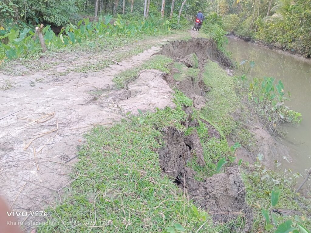 সহকারী শিক্ষক মো. শাহীন বলেন, আজ পর্যন্ত এখানে উন্নয়নের কোনো ছোঁয়া লাগেনি। রাস্তাটির অর্ধেকেরও বেশি ভেঙে গেছে। দ্রুত সংস্কার না হলে পুরো রাস্তা খালে বিলীন হয়ে যাবে।