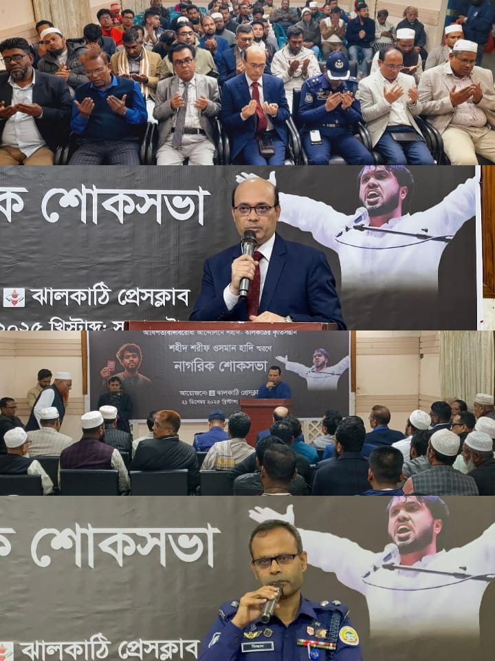 শহীদ ওসমান হাদি স্মরণে ঝালকাঠিতে নাগরিক শোকসভা