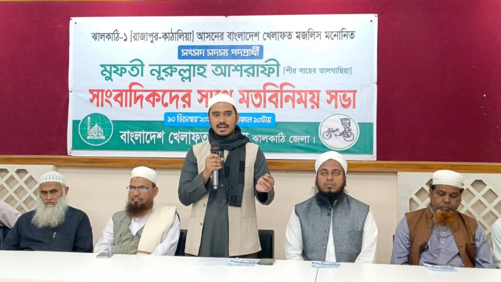 ঝালকাঠি-১ আসনে খেলাফত মজলিসের প্রার্থী মুফতি নূরুল্লাহ আশরাফীর মতবিনিময়