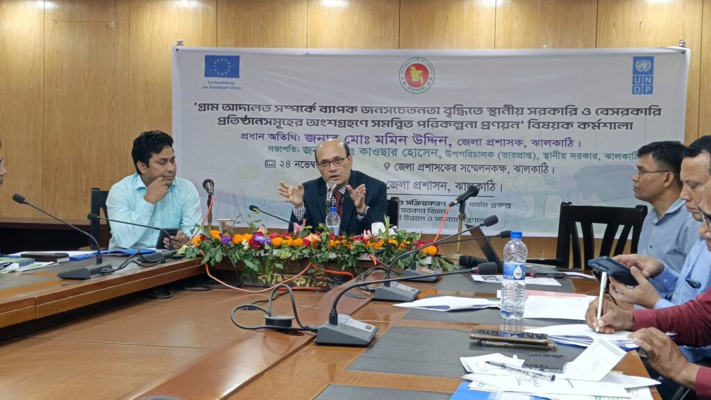 গ্রাম আদালত বিষয়ে জনসচেতনতা বাড়াতে ঝালকাঠিতে কর্মশালা