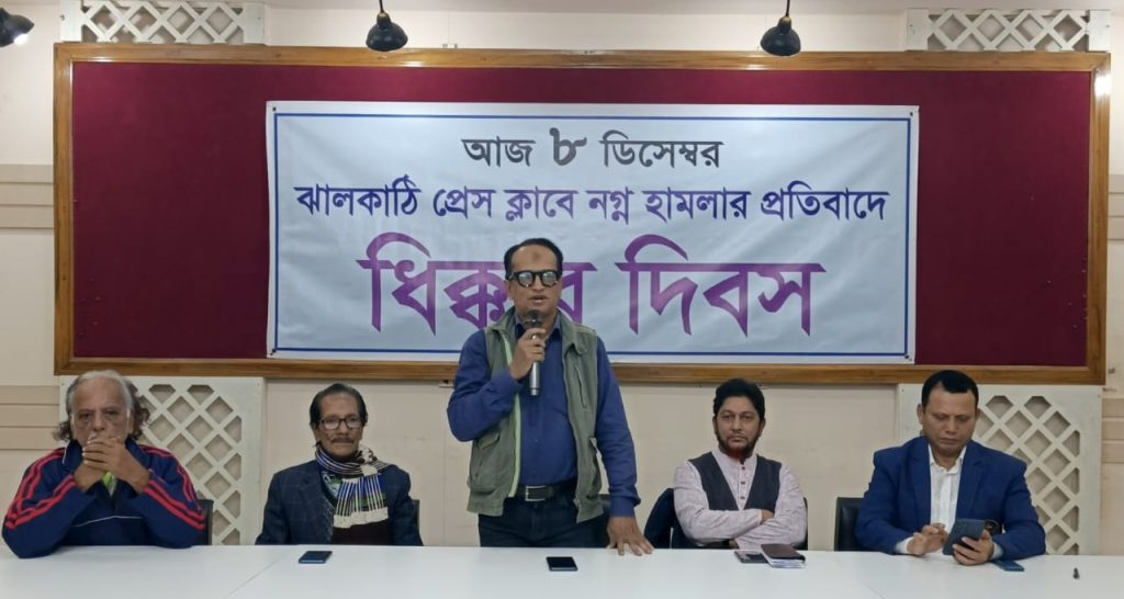 ঝালকাঠি প্রেসক্লাবে নগ্ন হামলার প্রতিবাদে ধিক্কার দিবস পালিত