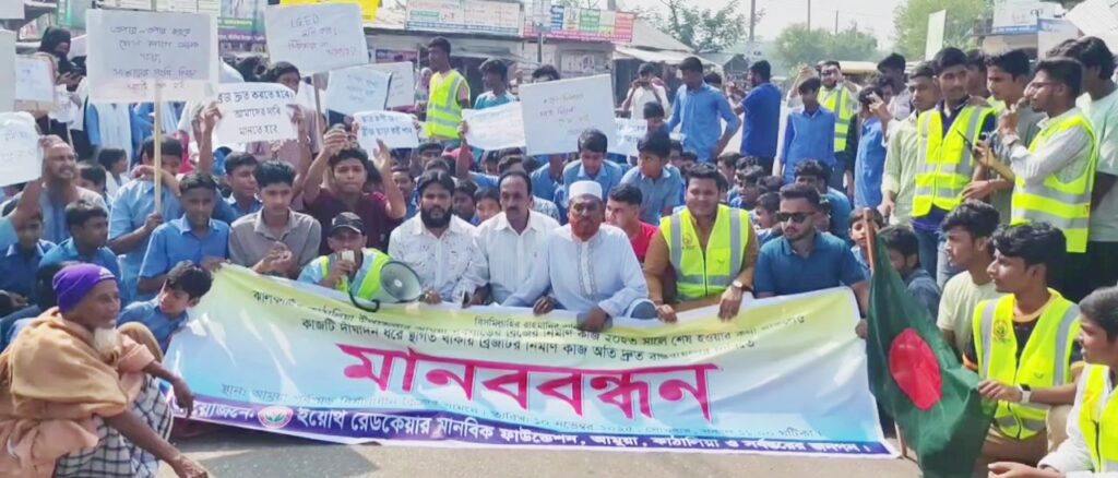 দূরযাত্রা রিপোর্ট : ঝালকাঠির কাঠালিয়া উপজেলার আমুয়া হাসপাতালসংলগ্ন ধোপার নদীর ওপর নির্মাণাধীন সেতুর কাজ দ্রুত শেষের দাবিতে মানববন্ধন, র্যালি ও সড়ক অবরোধ কর্মসূচি পালিত হয়েছে। দীর্ঘদিন ধরে সেতুর কাজ বন্ধ থাকায় ভোগান্তিতে রয়েছেন স্থানীয় মানুষ। সোমবার সকাল ১১টার দিকে ইয়োথ রেডকেয়ার মানবিক ফাউন্ডেশনের উদ্যোগে আয়োজিত এ কর্মসূচিতে শত শত শিক্ষার্থী ও এলাকাবাসী অংশ […]