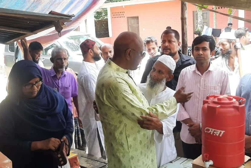 আবাসনে অসহায় পরিবারে গরুর মাংস দিলেন জেলা প্রশাসক