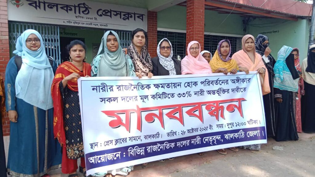 ঝালকাঠিতে ৩৩% নারী অন্তর্ভুক্তির দাবিতে মানববন্ধন